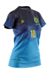 Camiseta Baby Look Filtro Uv Brasil Canarinho Azul Campeão