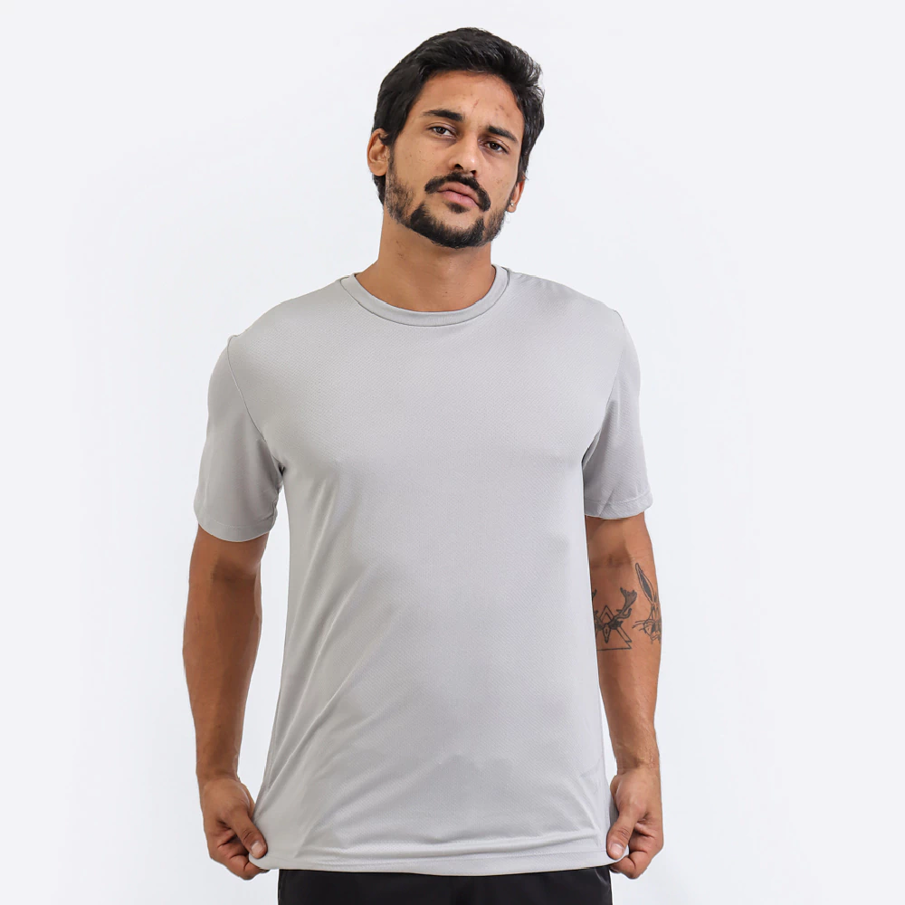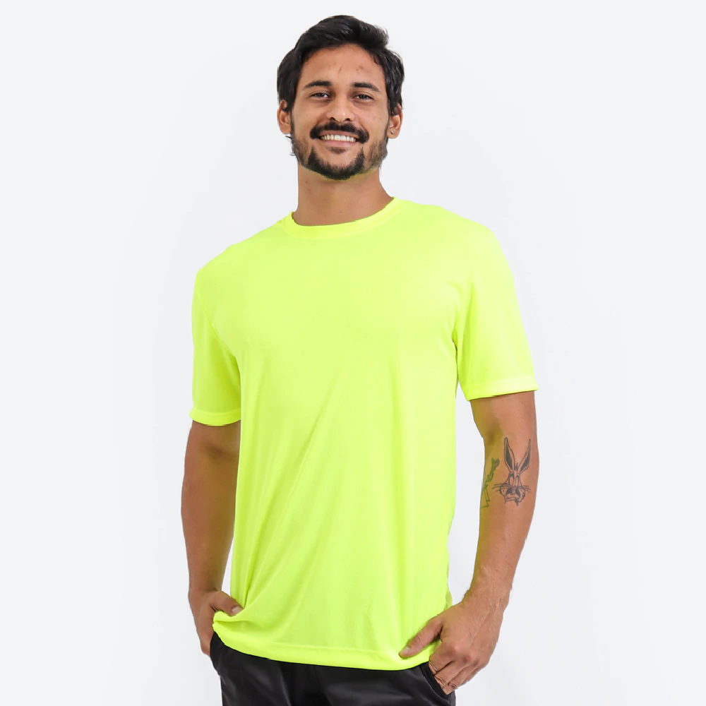 Feitas de tecido Dryfit 100% Poliéster, nossas camisetas se adaptam ao seu corpo, proporcionando uma experiência única de desempenho e conforto prolongado. Liberdade de movimentos é a palavra de ordem.